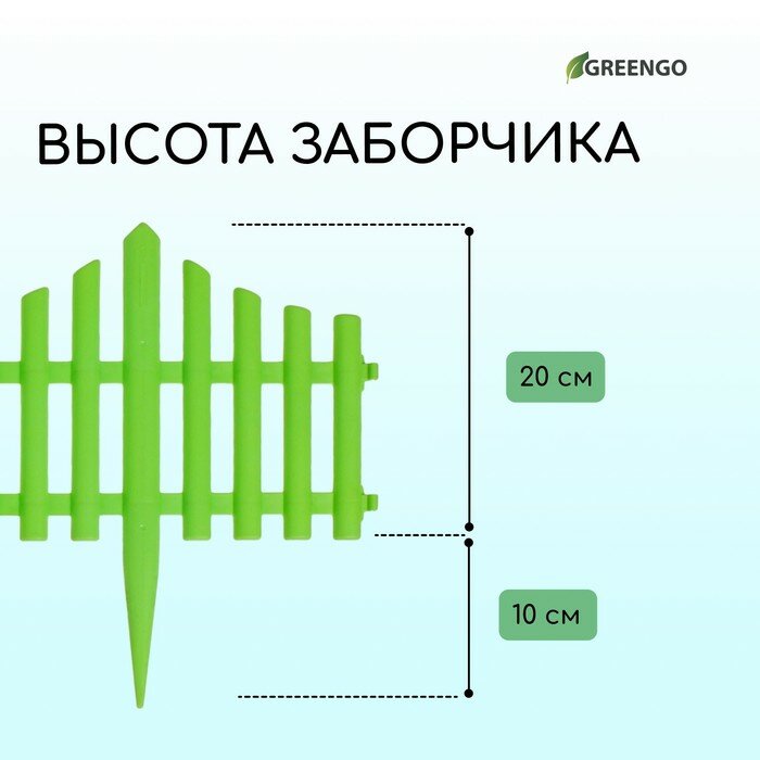 Greengo Ограждение декоративное, 30 × 300 см, 5 секций, пластик, салатовое