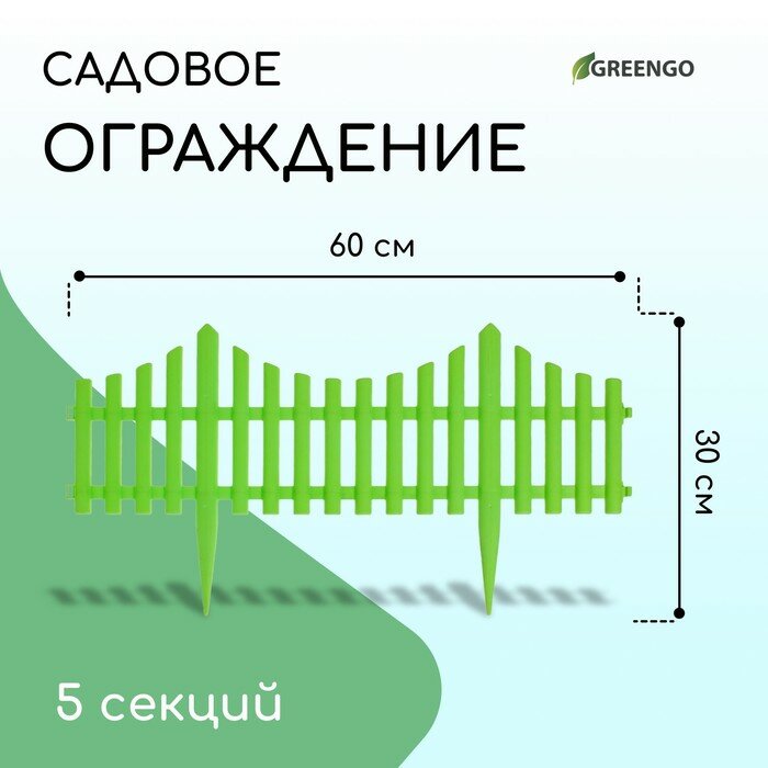 Ограждение декоративное, 30 ? 300 см, 5 секций, пластик, зелёное, Greengo Greengo 3296973 .