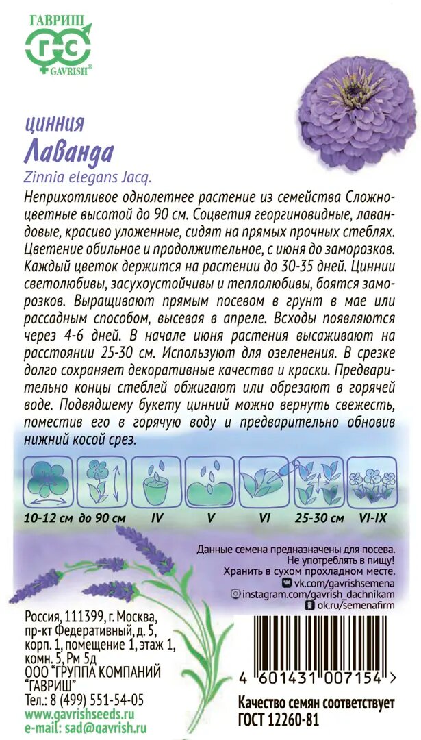 ГВ Цинния Лаванда 0.5 г серия Лавандовые грезы