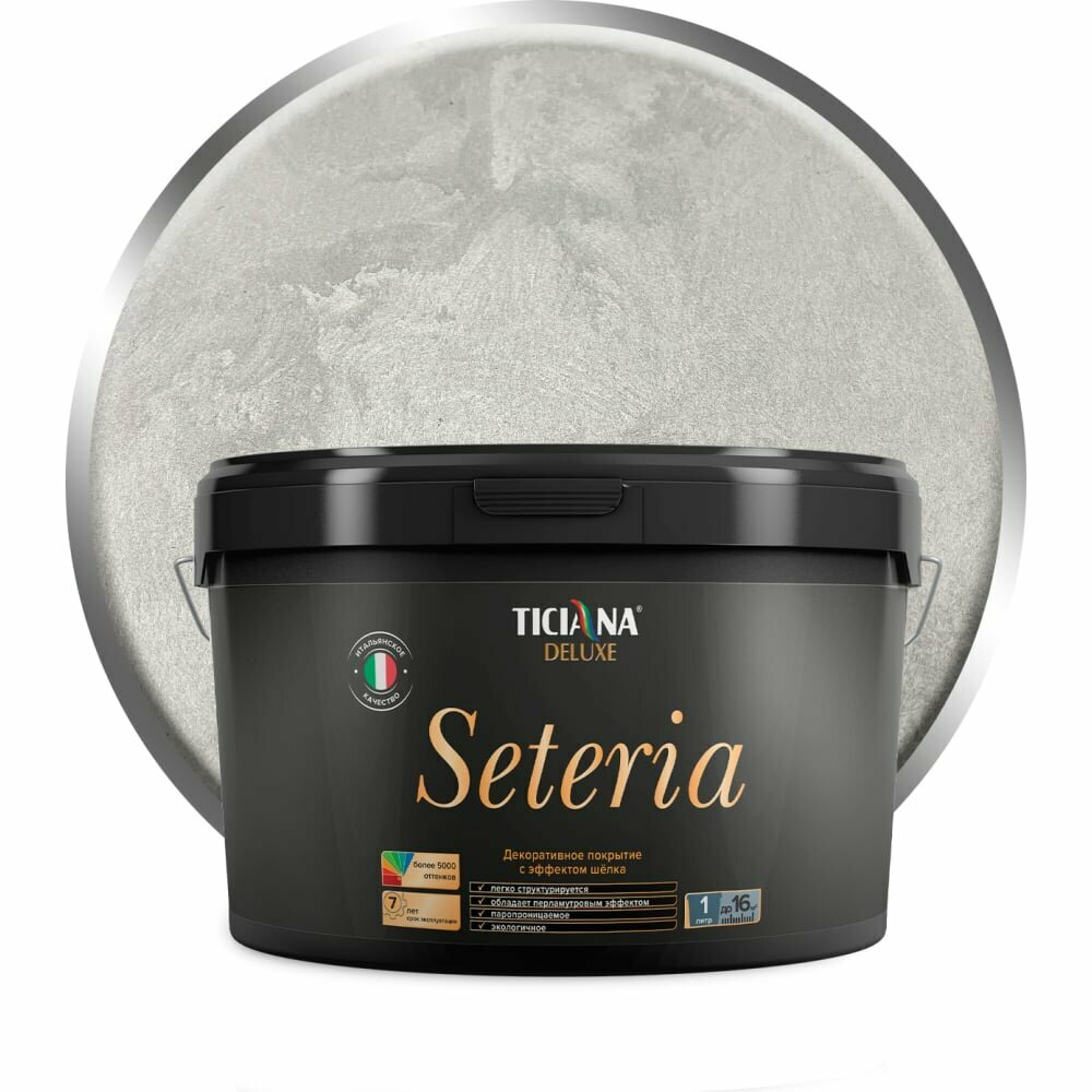 Seteria - декоративное покрытие с эффектом шелка TICIANA DELUXE (Артикул: 4300002898; Цвет: Серебро; Фасовка = 0,9 л)