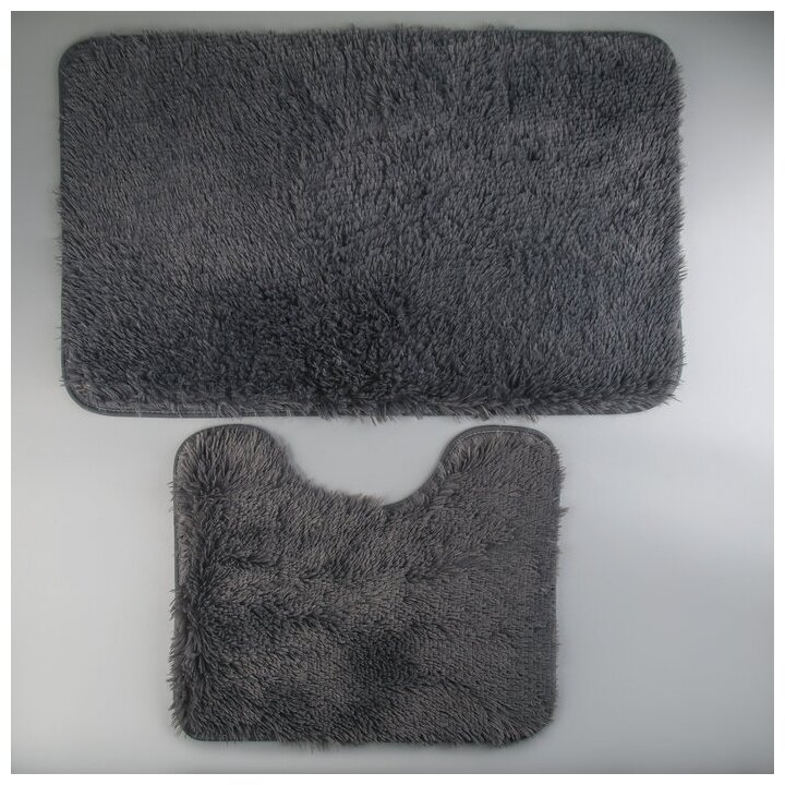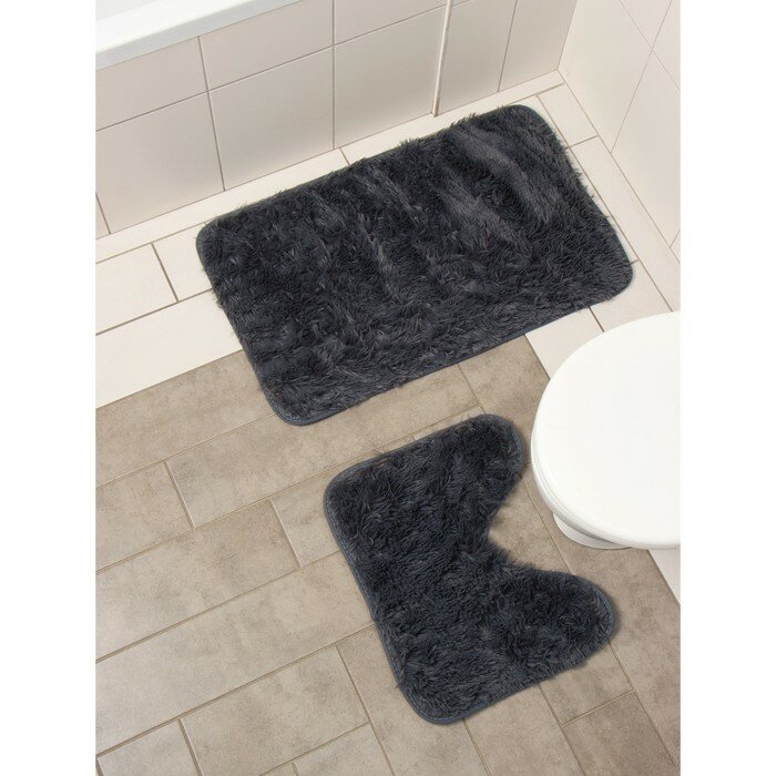 Набор ковриков для ванной и туалета Доляна «Пушистик», 2 шт: 40×50, 50×80 см, цвет серый