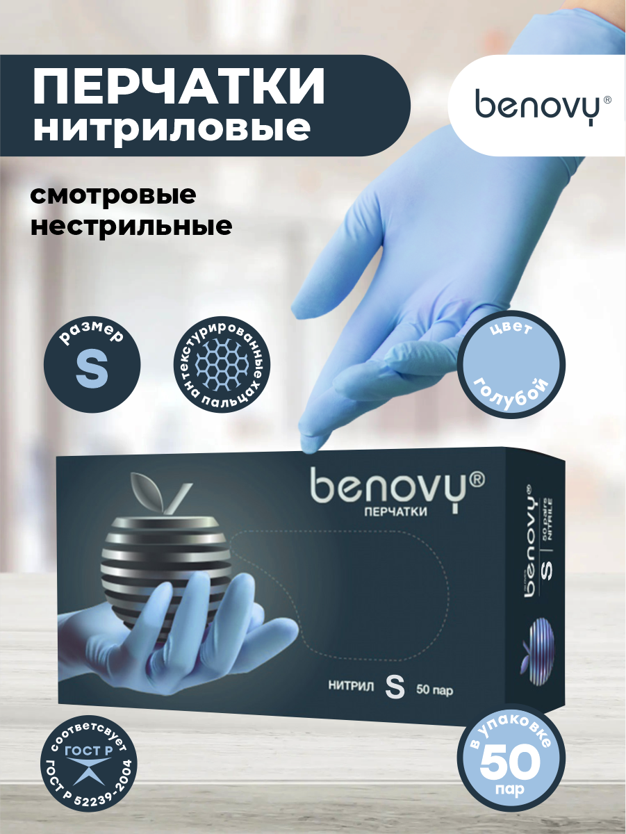 СохранитьBenovy Перчатки Нитриловые текстурированые на пальцах, голубые, размер S, 50 пар интересное: