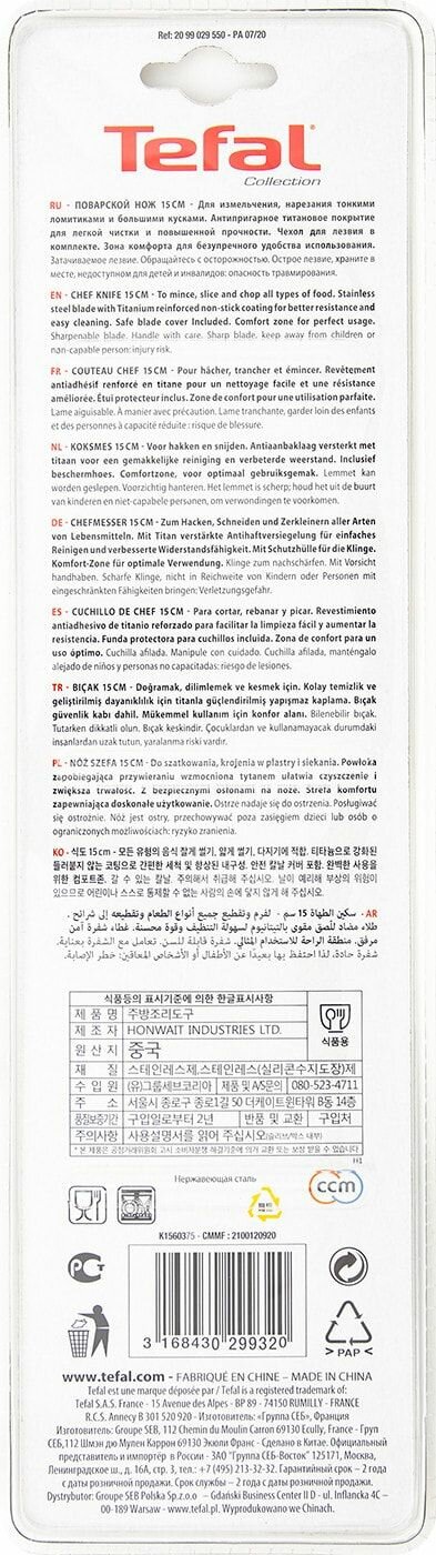 Кухонный нож поварской Tefal Collection 15 см интересное: