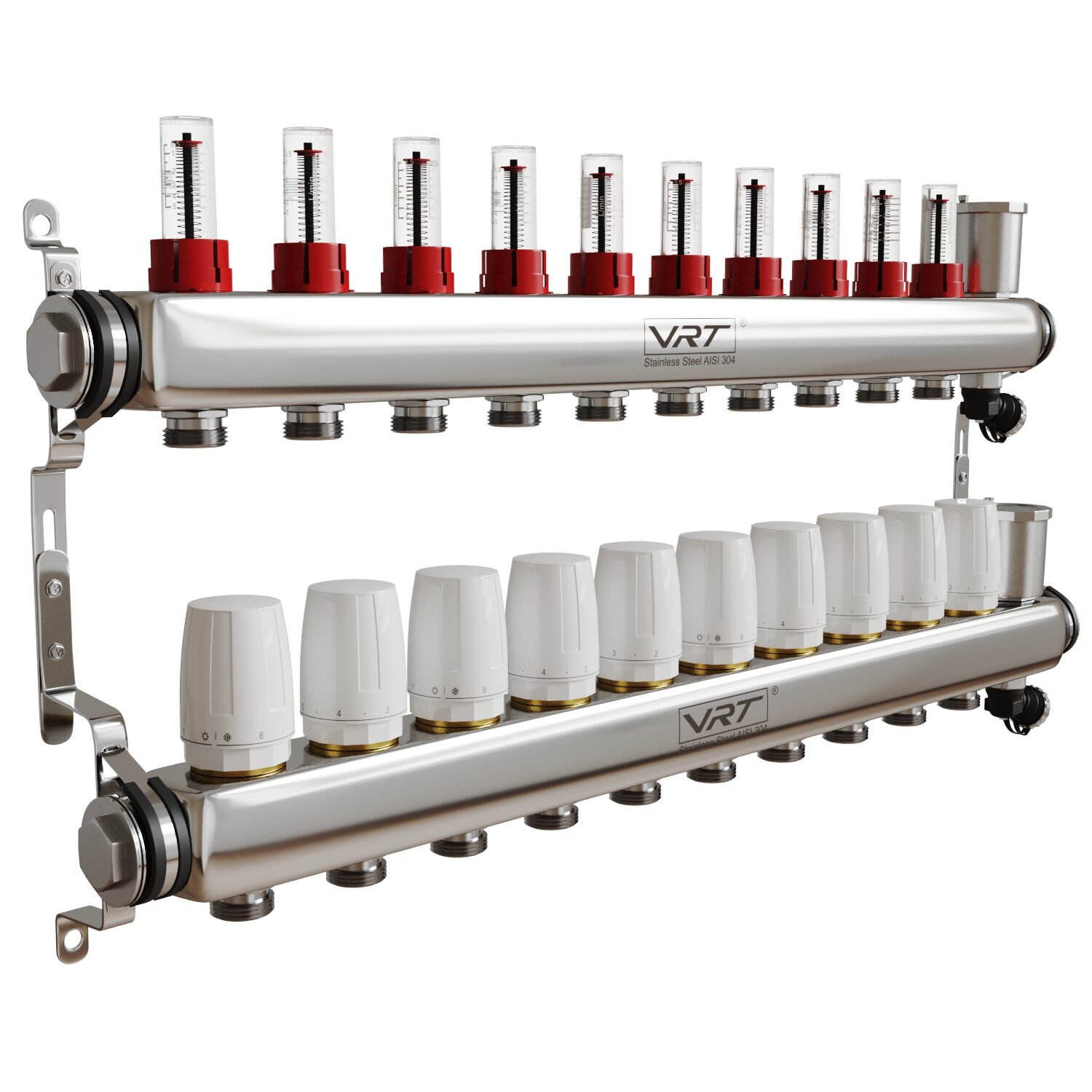 Коллекторная группа VRT® 1'' х 3/4'' (евроконус) 10 вых, авт в/отвод, c расходомерами интересное:
