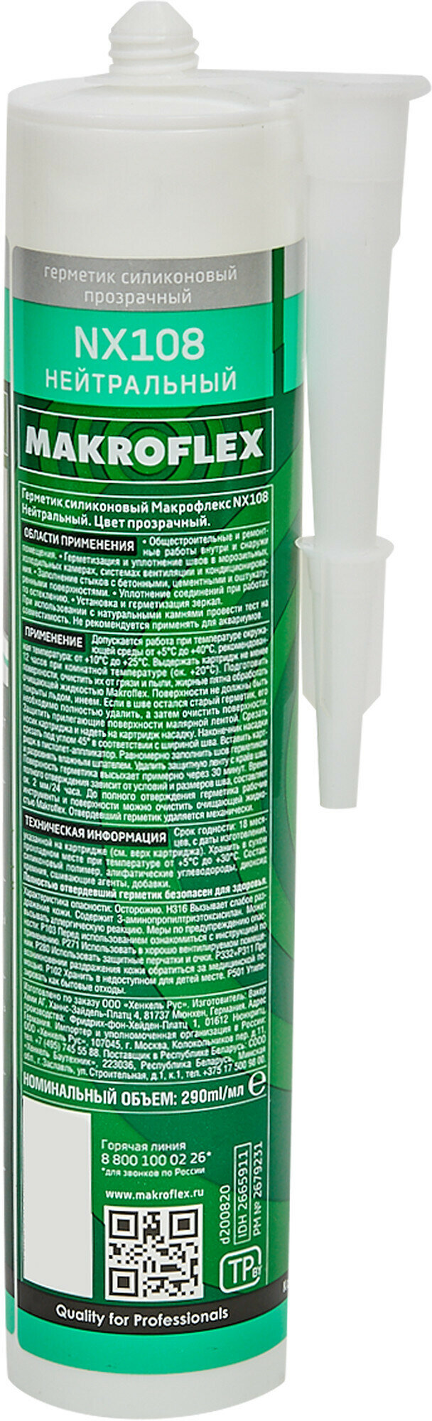 Макрофлекс NX108 герметик Нейтральный бесцветный (0,29л) / MAKROFLEX герметик Нейтральный силиконовый NX108 бесцветный (0,29л)