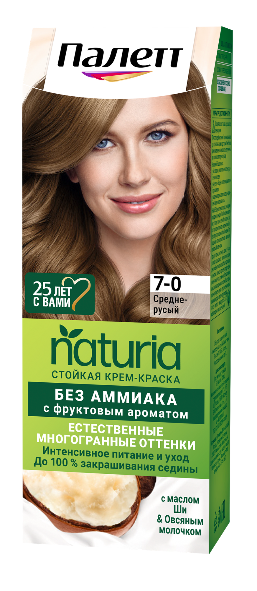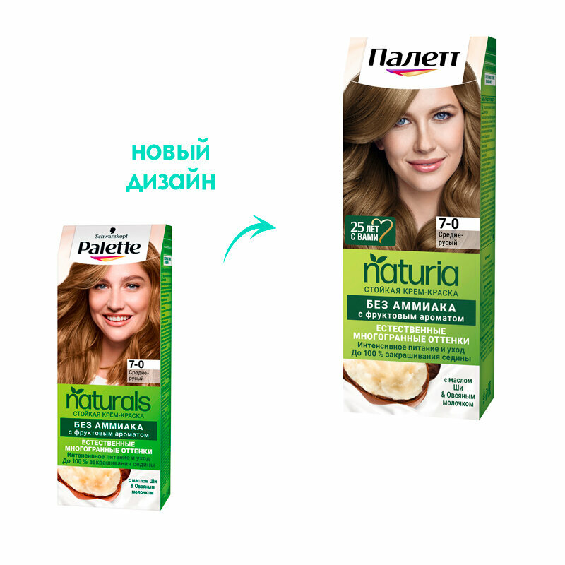 Палетт Naturia Стойкая крем-краска для волос, 7-0 Средне-русый, 110 мл - 6 шт