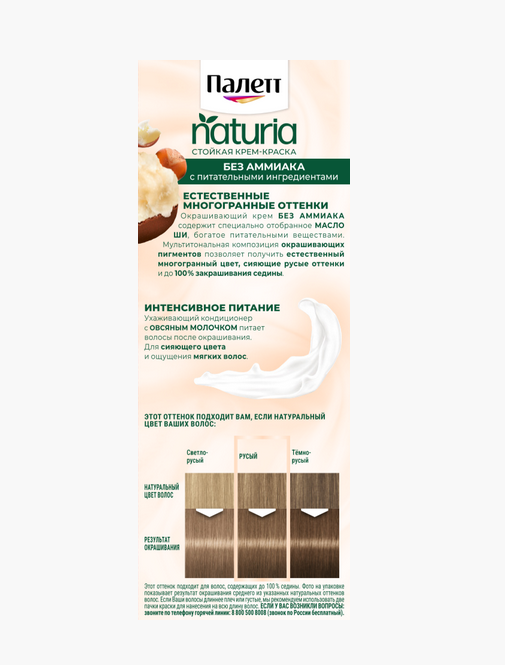Палетт Naturia Стойкая крем-краска для волос, 8-0 Светло-русый, 110 мл - 6 шт