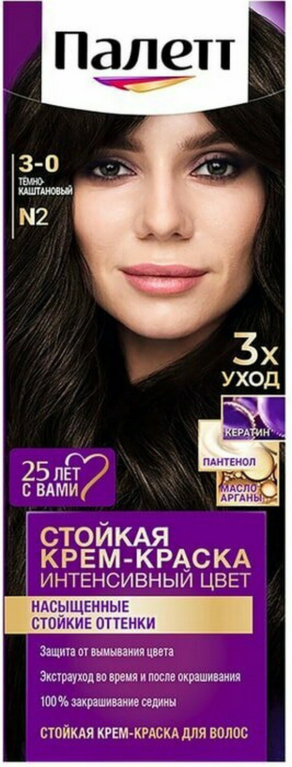 Палетт Стойкая крем-краска Интенсивный цвет, N2 3-0 Темно-каштановый, 110 мл - 2 шт