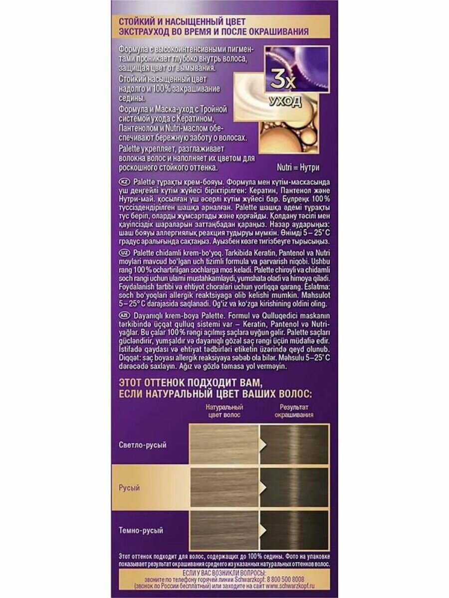 Ниже Вы можете прочитать отзывы на Palette крем-краска для волос, C6 Холодный средне-русый 2 шт., ознакомится с подробными характеристиками, посмотреть интересные обзоры и фотографии на Palette крем-краска для волос, C6 Холодный средне-русый 2 шт..