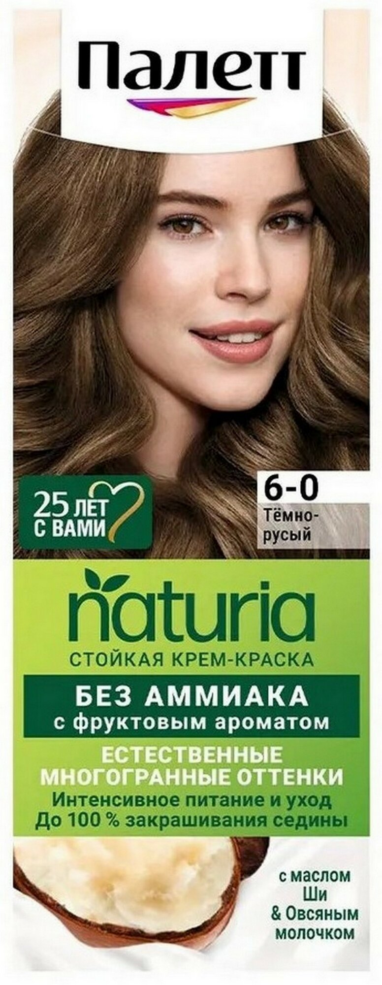 Палетт Naturia Стойкая крем-краска для волос, 6-0 Темно-русый, 110 мл - 6 шт