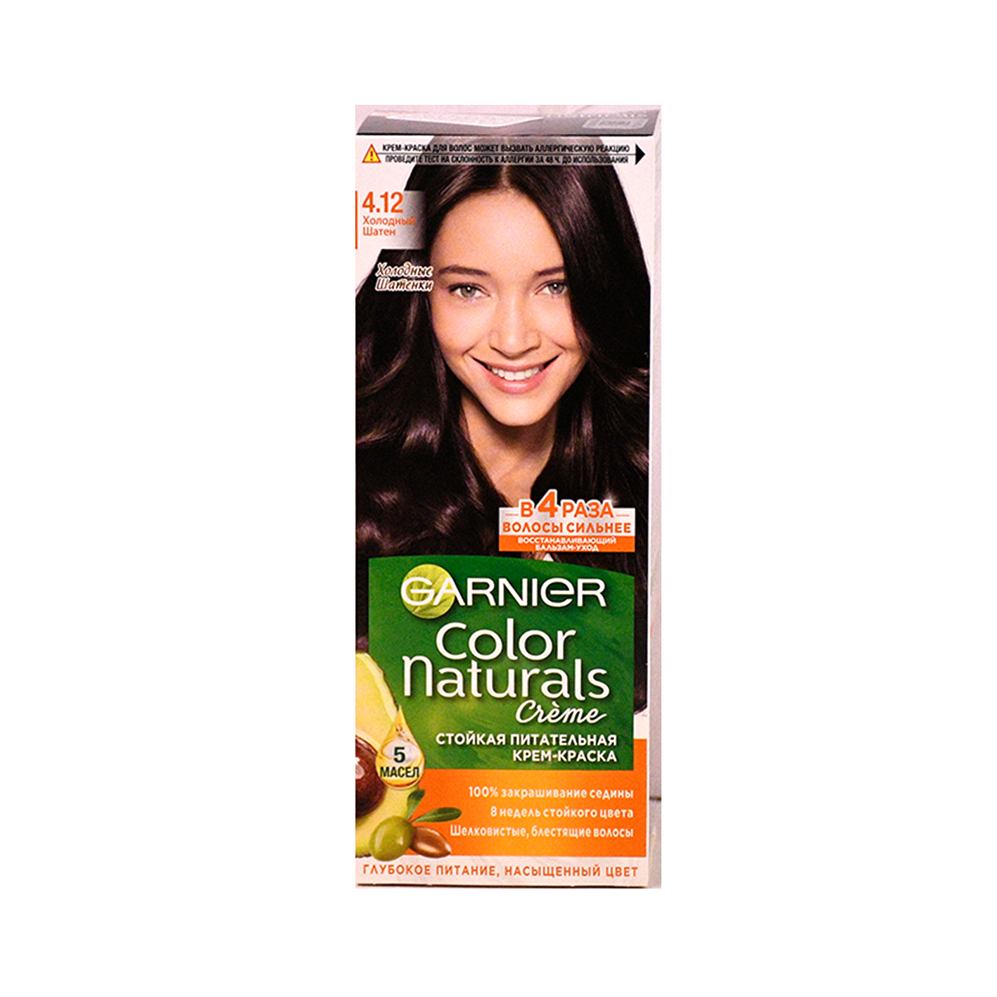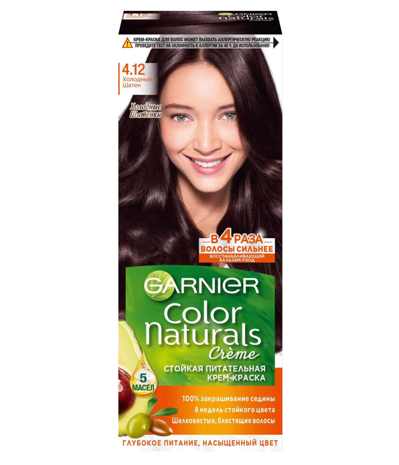 Крем-краска для волос Garnier Color Naturals с 3 маслами, тон 4.12, Холодный Шатен