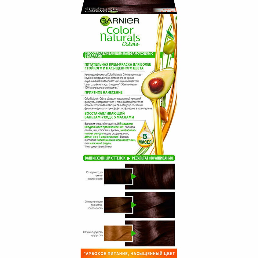 Крем-краска для волос Garnier Color Naturals с 3 маслами, тон 3.23, Темный шоколад
