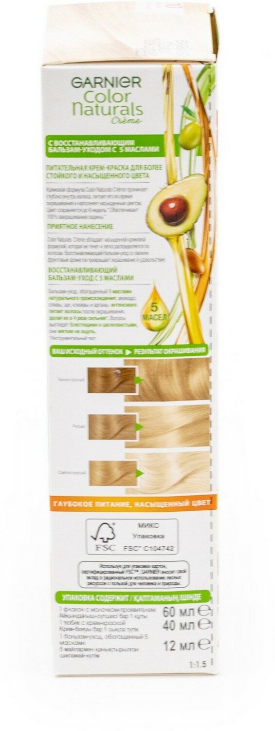 Крем-краска для волос Garnier Color Naturals c 3 маслами, тон 7.1, Ольха