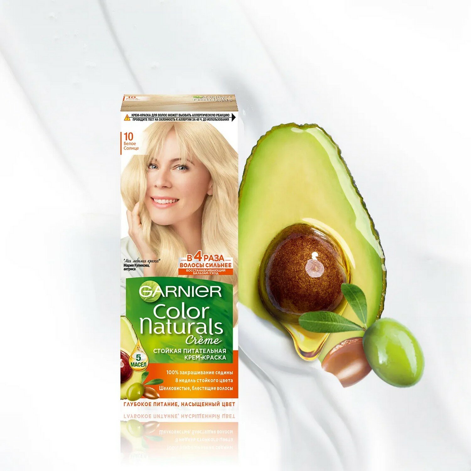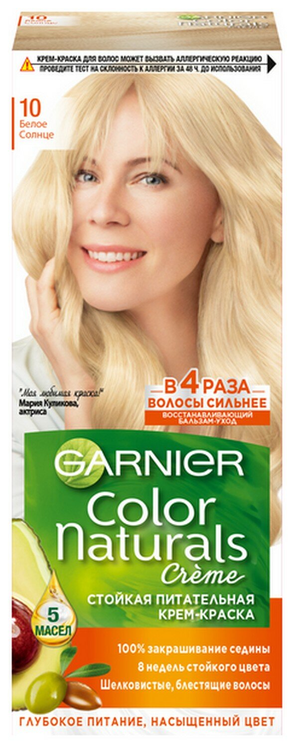Крем-краска для волос Garnier Color Naturals с 3 маслами, тон 10, Белое солнце
