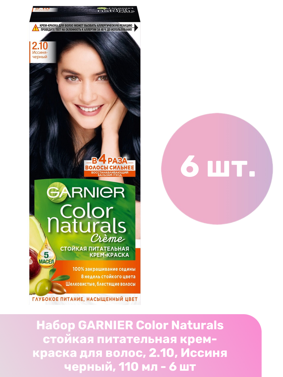 GARNIER Color Naturals стойкая питательная крем-краска для волос, 2.10, Иссиня черный, 110 мл - 6 шт