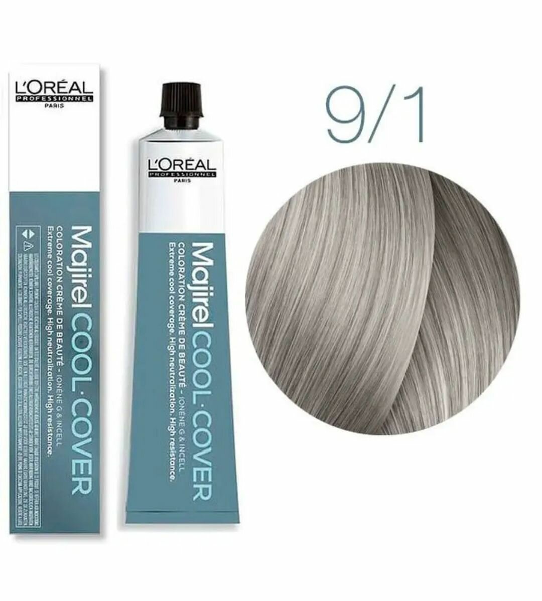 L'Oreal Professionnel Majirel Cool-Cover Стойкая краска-крем для ультра холодных оттенков 9.1 Очень светлый блондин пепельный