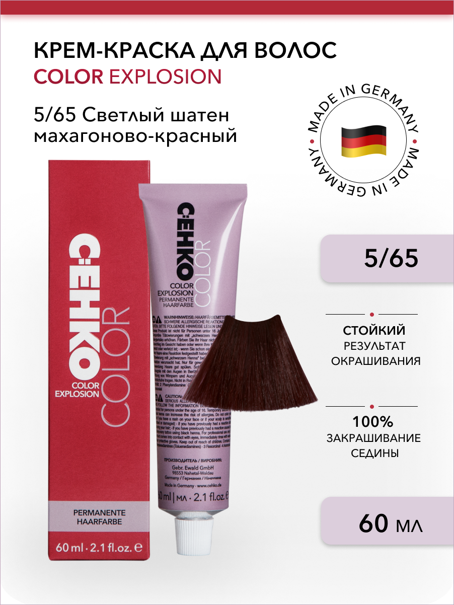Купить C:EHKO Крем-краска для волос Color Explosion 5/65 Светлый шатен махагоново-красный 60 мл