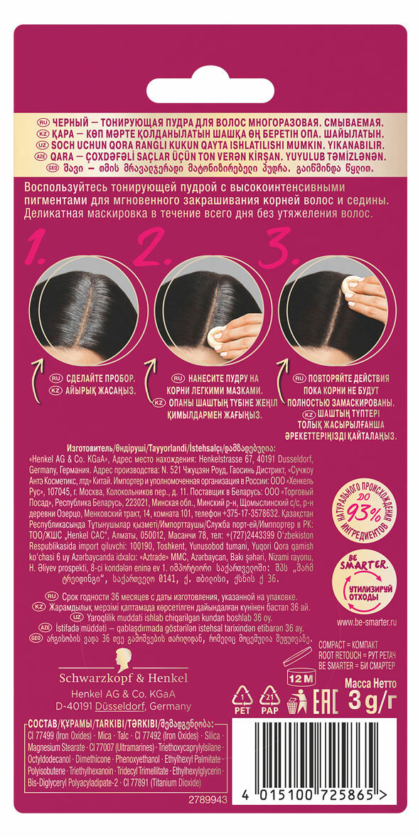Тонирующая пудра для корней волос Palette Roor Retouch, тон черный .