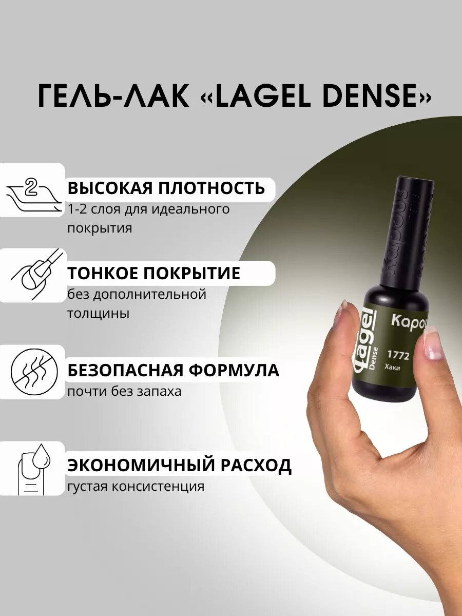 Купить Гель-лак Kapous "Lagel Dense" 1772 Хаки, гель-лак 8 мл