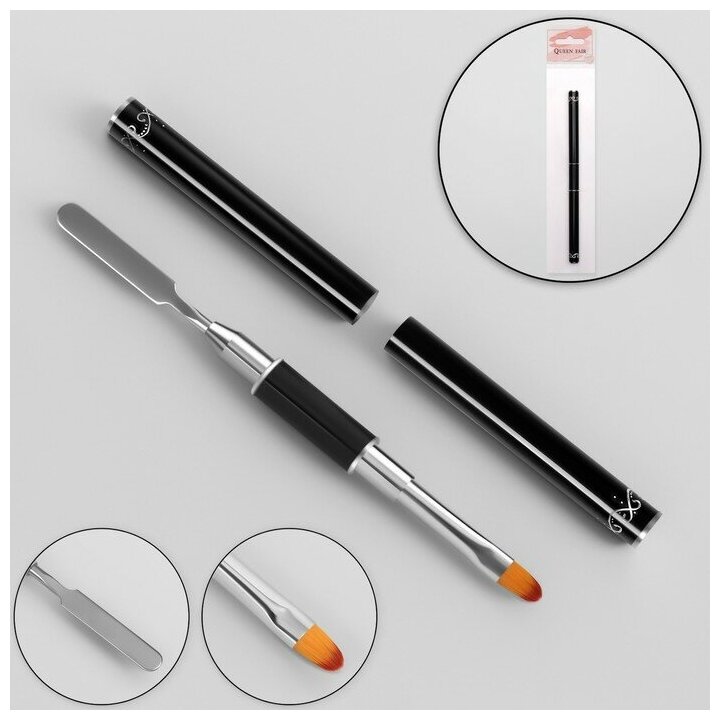 Купить Queen fair Кисть-шпатель для акрил-геля, лепесток, 14 см, d - 6 × 9 мм, цвет чёрный/серебристый