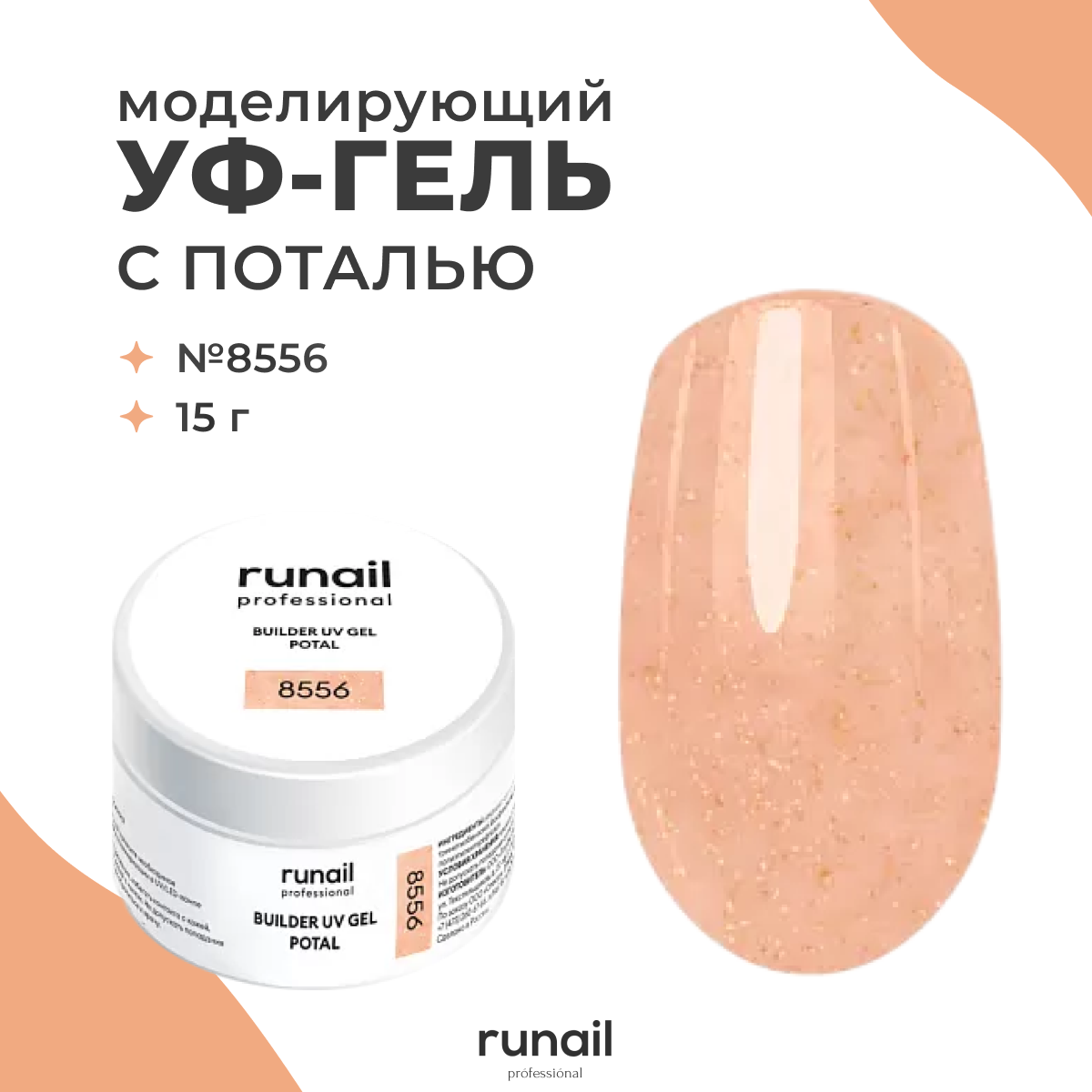 RuNail, BUILDER UV GEL POTAL - моделирующий УФ-гель с поталью №8555, 15 гр