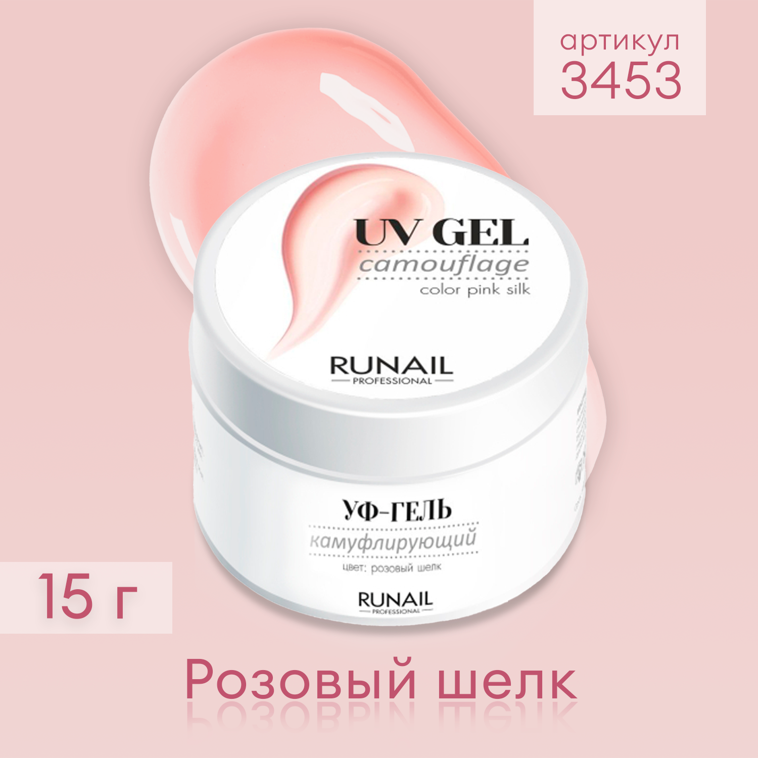 Купить Гель камуфлирующий 3453 ruNail (розовый шелк) 15 мл