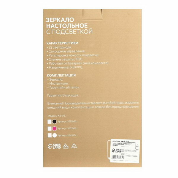 Luazon зеркало косметическое настольное KZ-06 зеркало косметическое настольное KZ-06 с подсветкой, белый