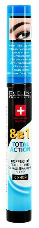 Купить Корректор для бровей Eveline 8в1 Total Action с хной постепенно окрашивающий, 10мл