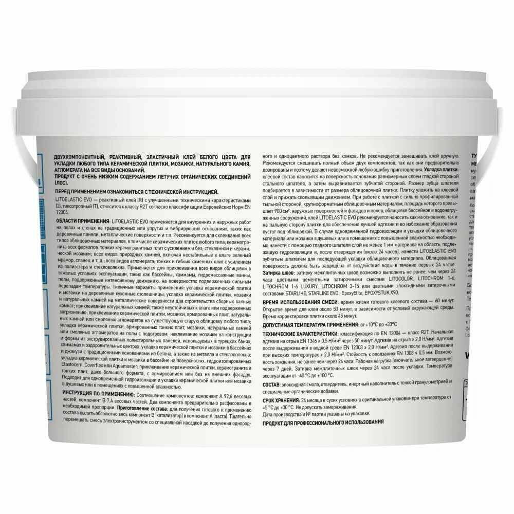 Двухкомпонентный клей LITOELASTIC EVO LITOKOL класс R2T, 10 кг bucket 484140003