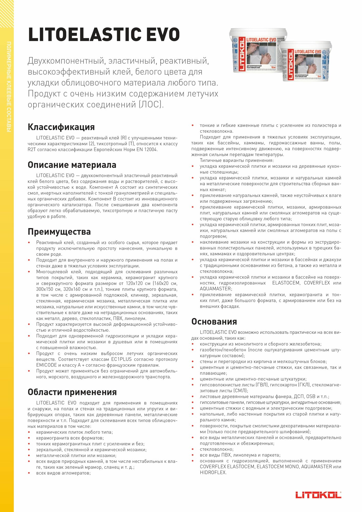 LITOELASTIC EVO- двухкомпонентный клей (10kg bucket)