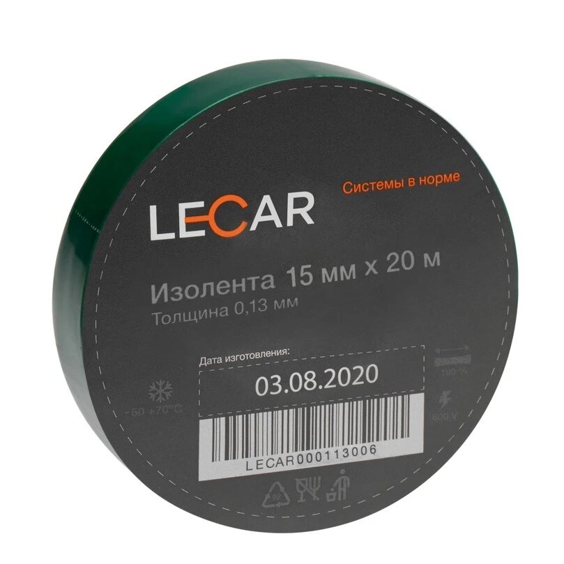 СохранитьИзолента ПВХ зеленая 15 мм х 20 м Lecar ЛИ LECAR000113006 | цена за 1 шт интересное: