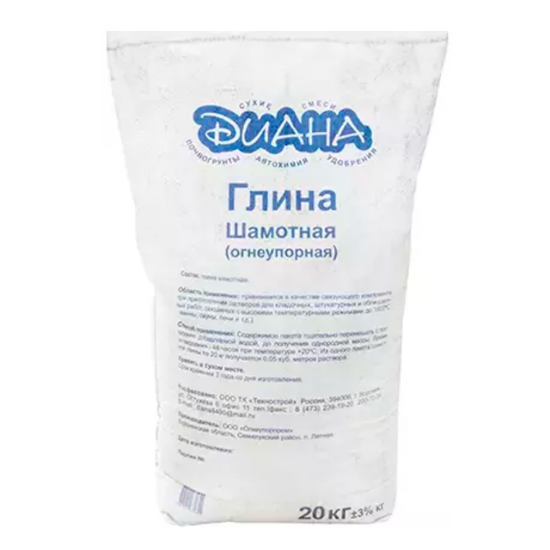 Купить Глина шамотная Диана 20 кг, 2 шт.