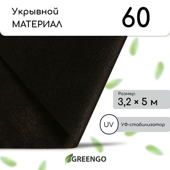 Материал мульчирующий, 5 × 3,2 м, плотность 60 г/м², с УФ-стабилизатором, чёрный, Greengo, Эконом 20%