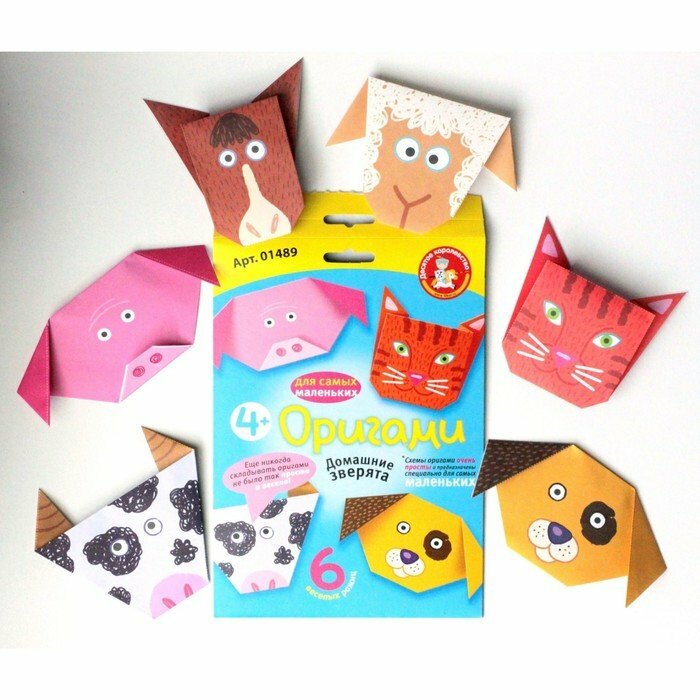 Набор для творчества "Оригами. Домашние зверята" для самых маленьких, бумажные поделки для малышей со схемами, развиваем моторику