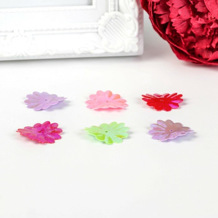 Пайетки для творчества "Цветы", яркие, цвет ассорти, 5 цветов, 22 мм, 20 грамм, остров сокровищ, 661286