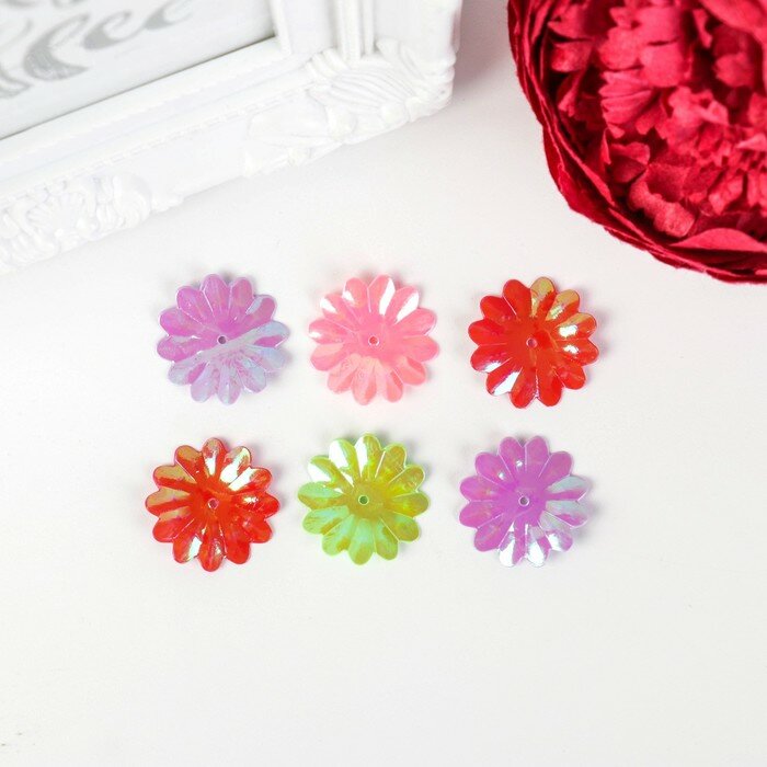 Пайетки для творчества Остров сокровищ Цветы, яркие, 5 цветов, 22 мм, 20 г (661286)