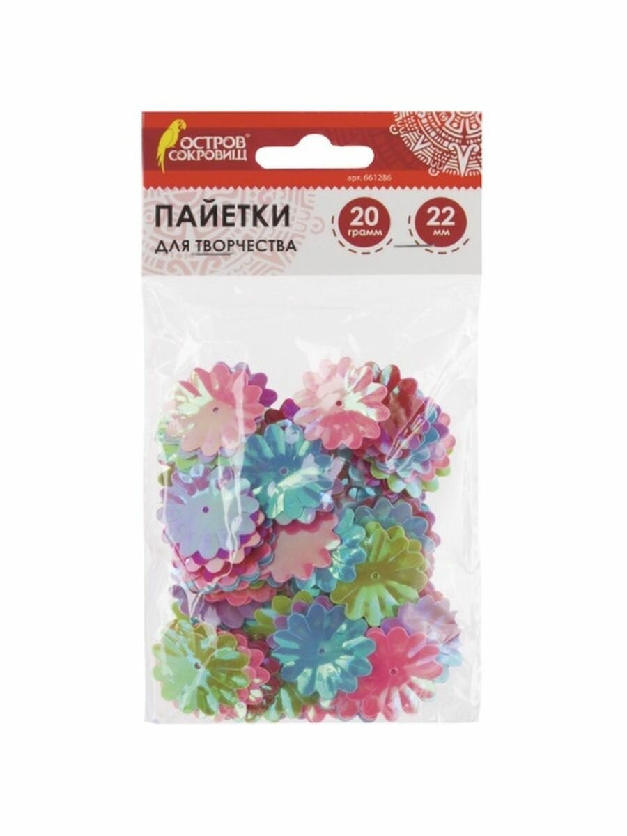 Пайетки для творчества Цветы, яркие, цвет ассорти, 5 цветов, 22 мм, 20 грамм, остров сокровищ, 661286, (8 шт.)
