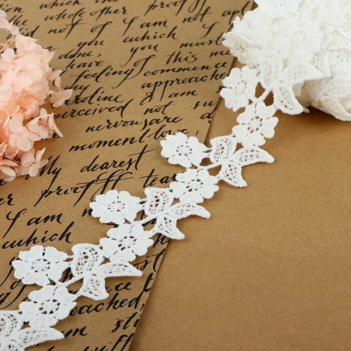 Кружево гипюровое, 50 мм ? 14 1 м, цвет белый 2785935 .