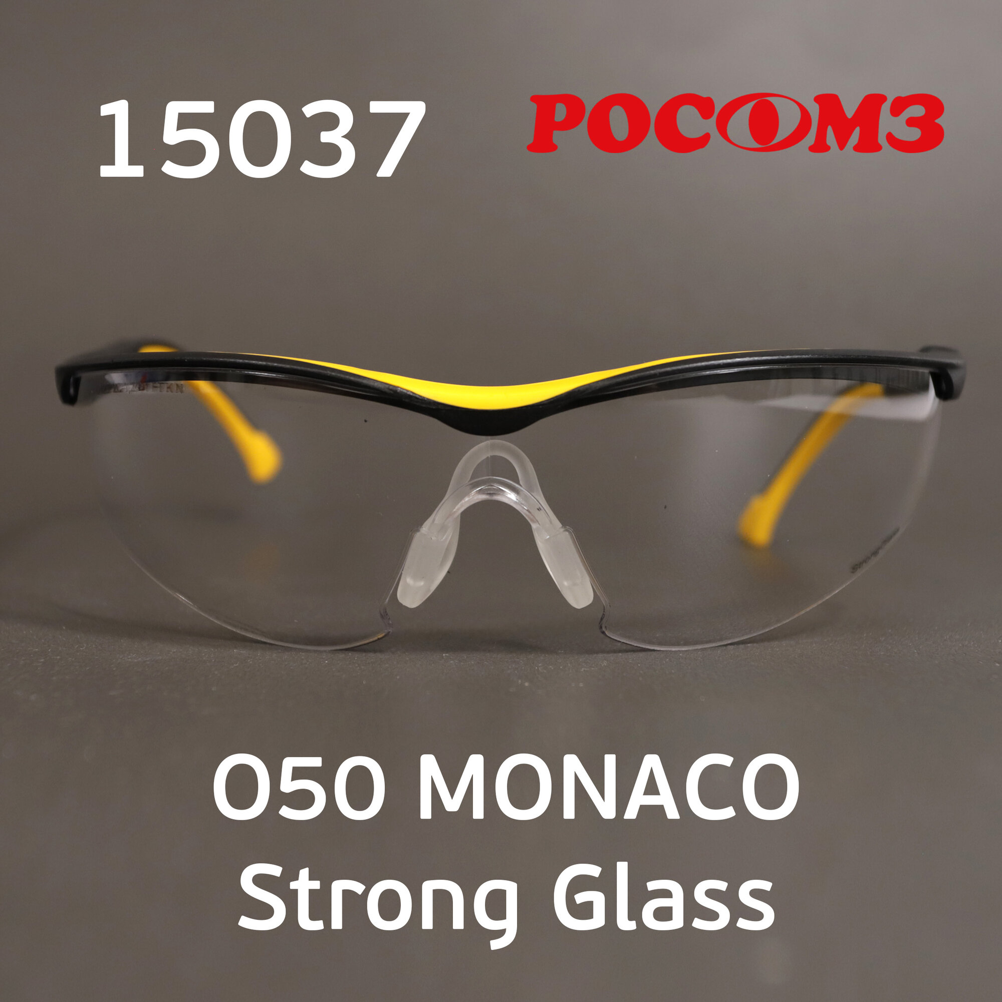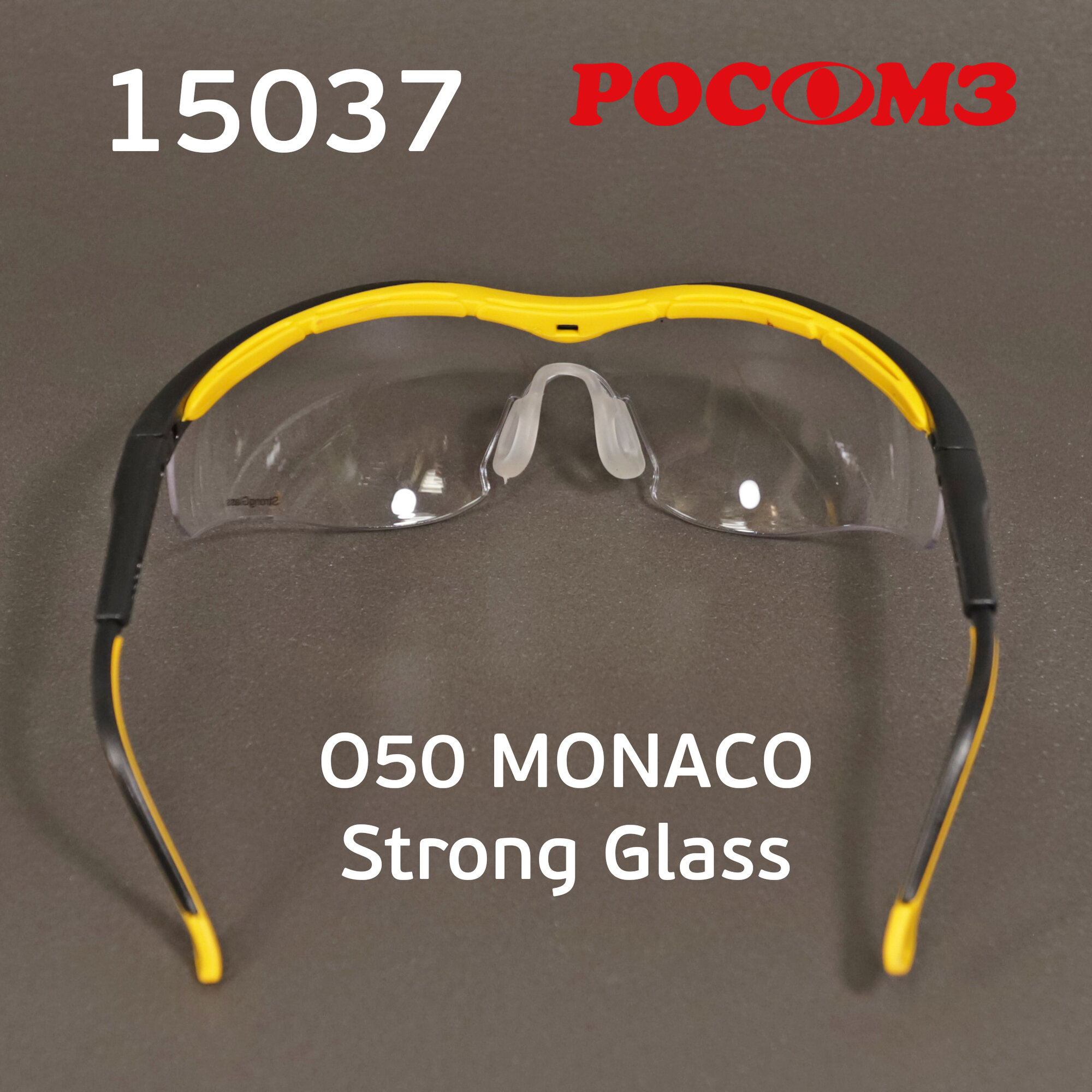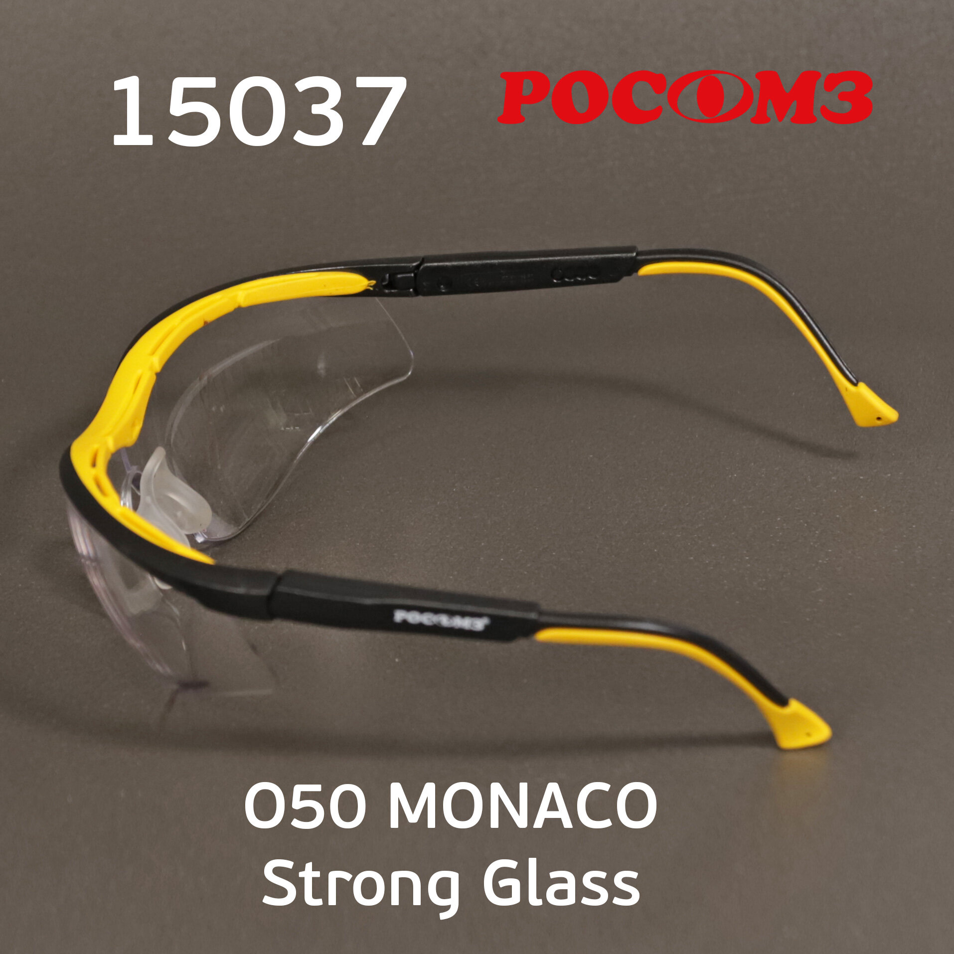 Очки защитные открытые РОСОМЗ О50 Monaco StrongGlass, прозрачные, регулируемые дужки, незапотевающее покрытие, 15037