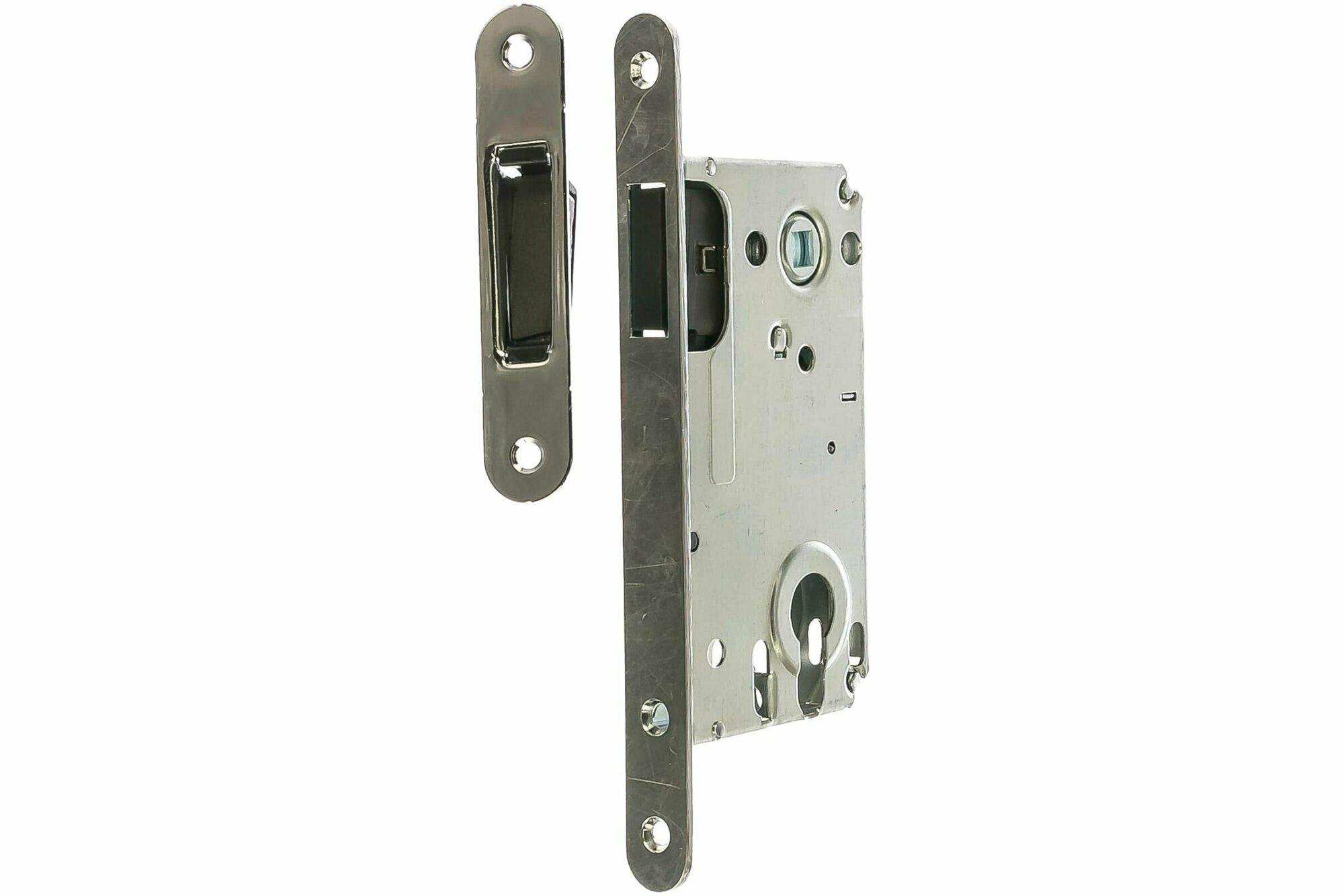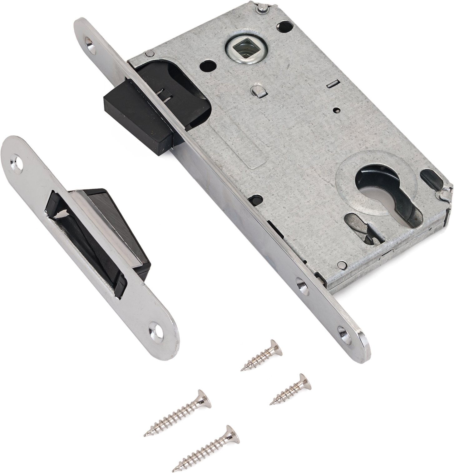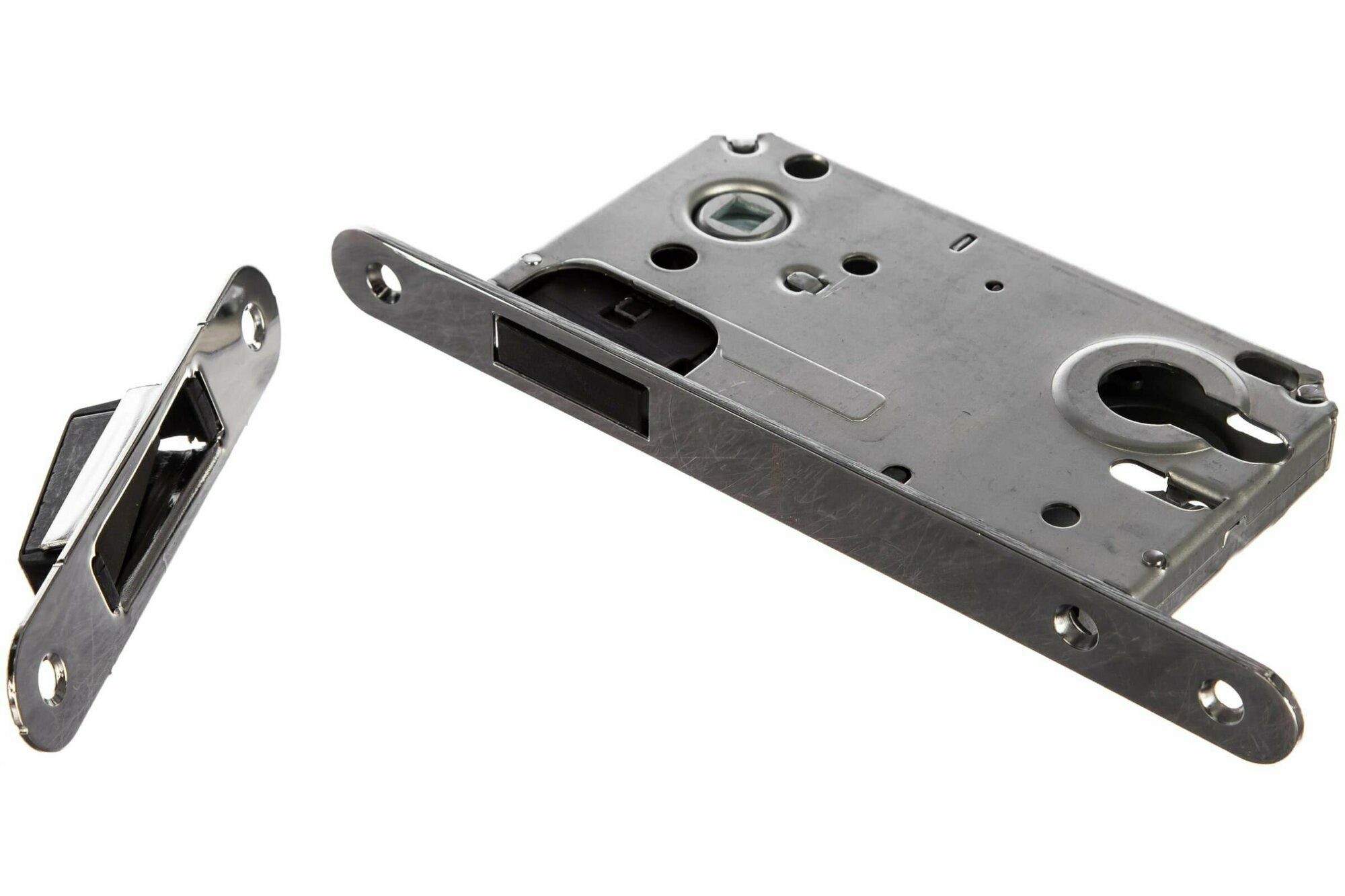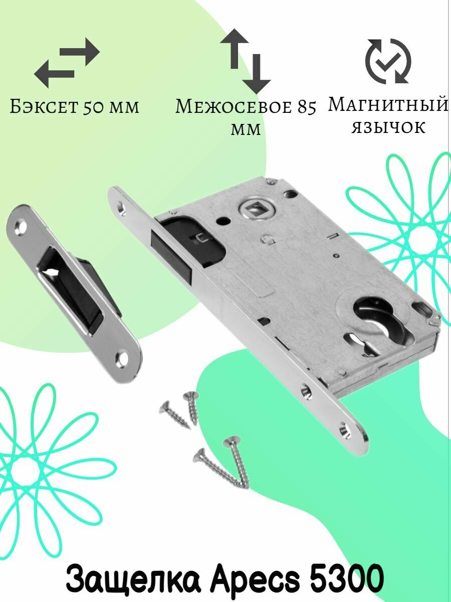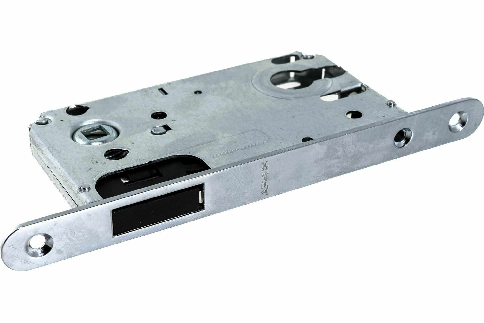 Замок врезной Apecs, 5300-M-CR, 15738, магнит, со смещенным ригелем, без ручек и сердцевины, хром