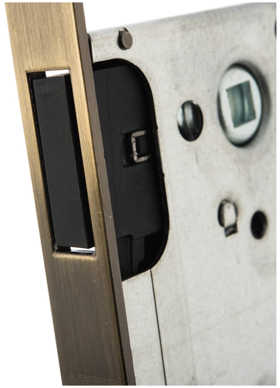 Замок врезной Apecs, 5300-M-AB, 15739, магнит, со смещенным ригелем, без ручек и сердцевины, бронза