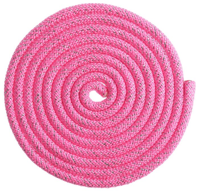 Скакалка гимнастическая утяжелённая, 3 м, 180 г, цвет неон-розовый/серебро люрекс