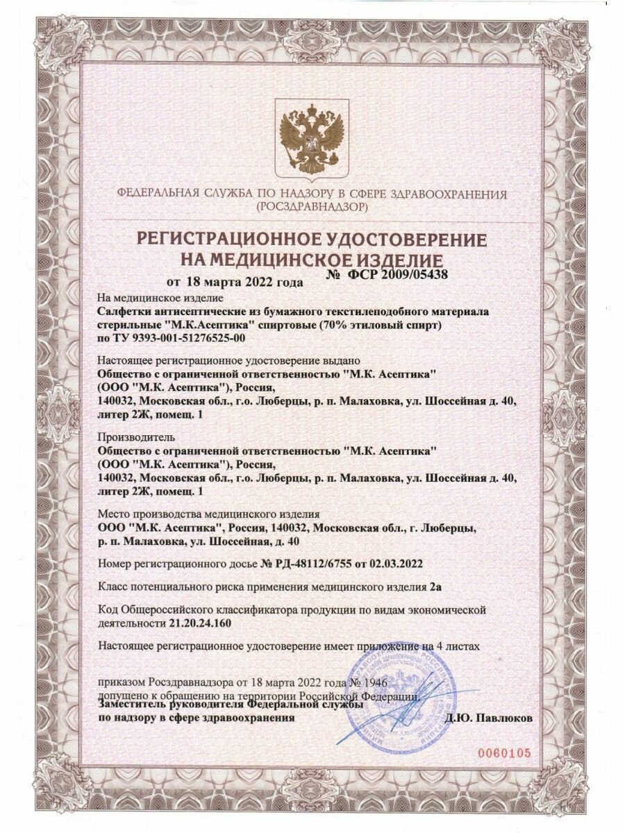 Салфетки асептика 400шт, 60х100мм, антисептические стерильные, спиртовые