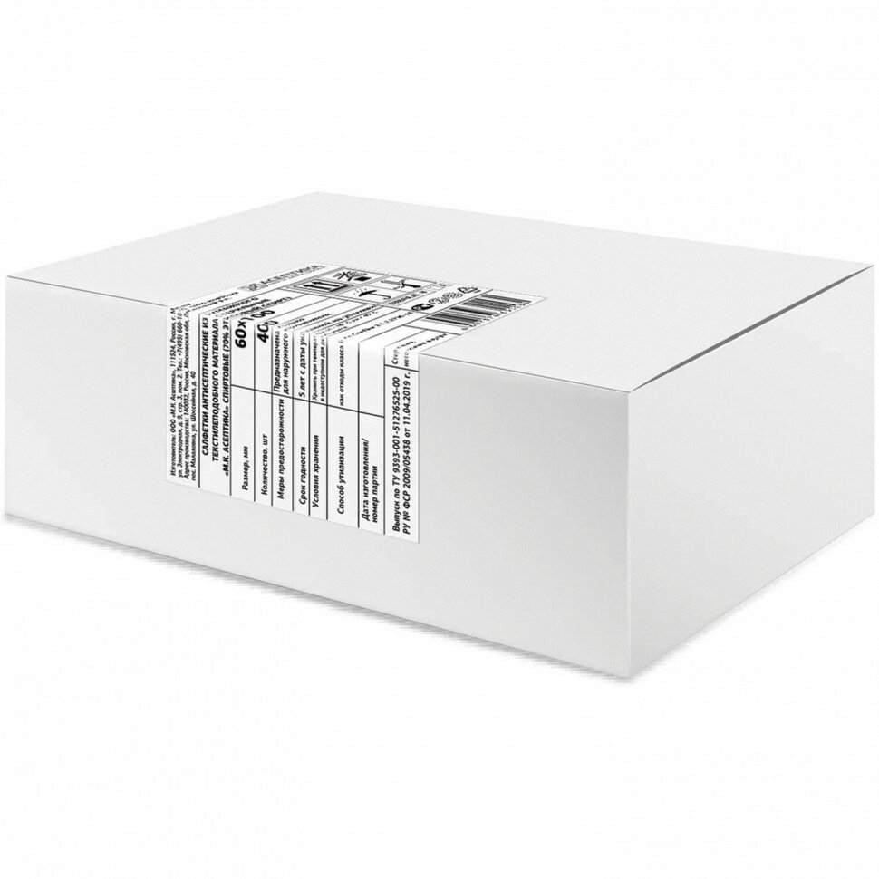 Спиртовые салфетки антисептические 60x100 мм комплект 400 шт., асептика, короб, АФ01676-МО05 В наборе: 1компл.