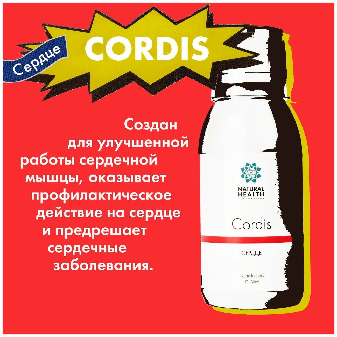 Купить CORDIS / Кордис - БАД для сердца и сосудов, 150 мл, Natural Health. Способствует нормализации работы сердца, сосудов, обоих кругов кровообращения. Является кардиопротектором и уменьшает симптомы стресса
