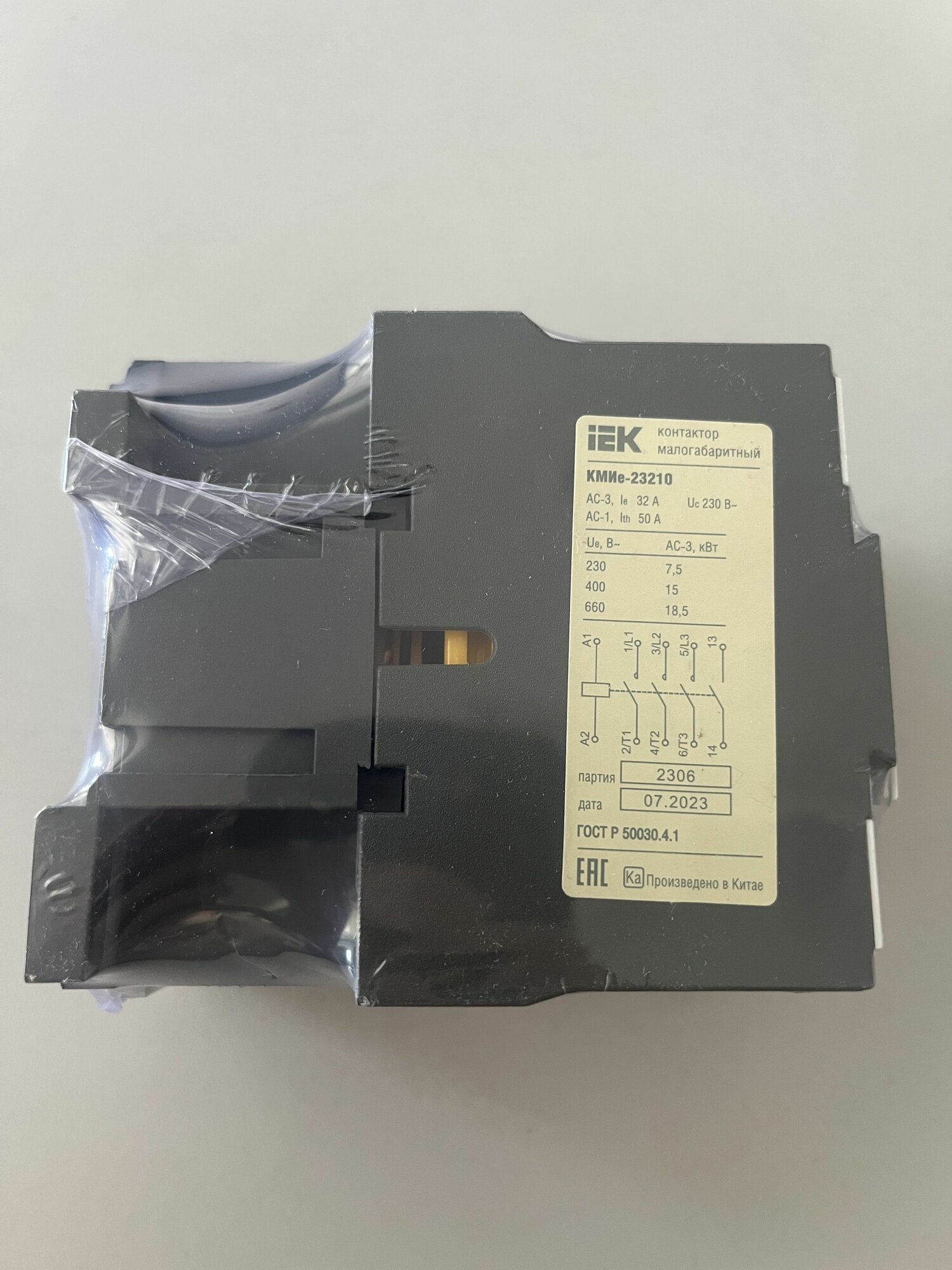 Контактор КМИе-23210 32А, Кат: 230В/АС3, 1НО, IEK. Арт: KKME21-032-230-10.