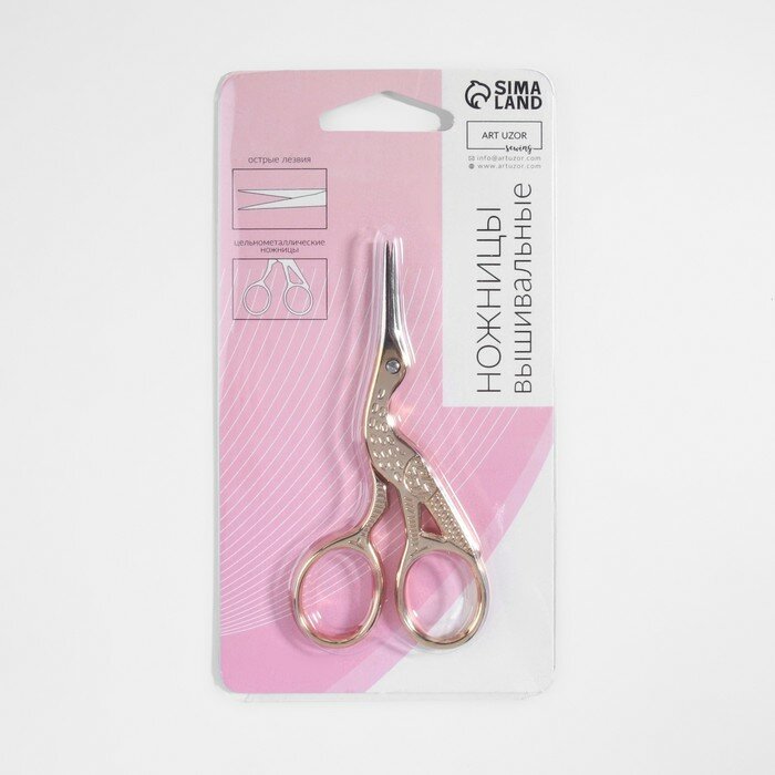 Арт Узор Ножницы для рукоделия «Цапельки», скошенное лезвие, 3,5", 9 см, цвет золотой интересное: