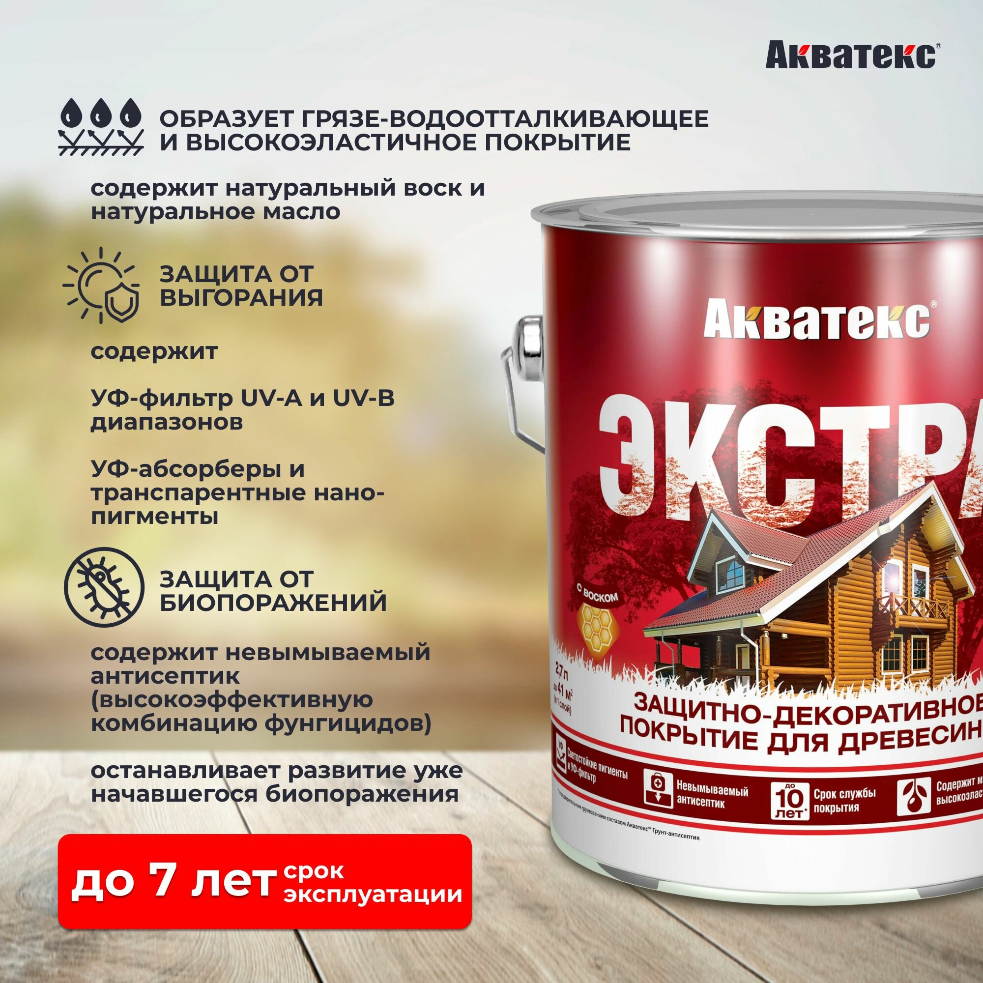 Защитно-декоративное покрытие для дерева Акватекс Акватекс Экстра, полуглянцевое, 2,7 л, сосна