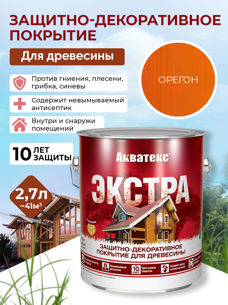 Акватекс Акватекс-Экстра защитно-декоративное покрытие для древесины алкидное полуглянцевое орегон 2,7л