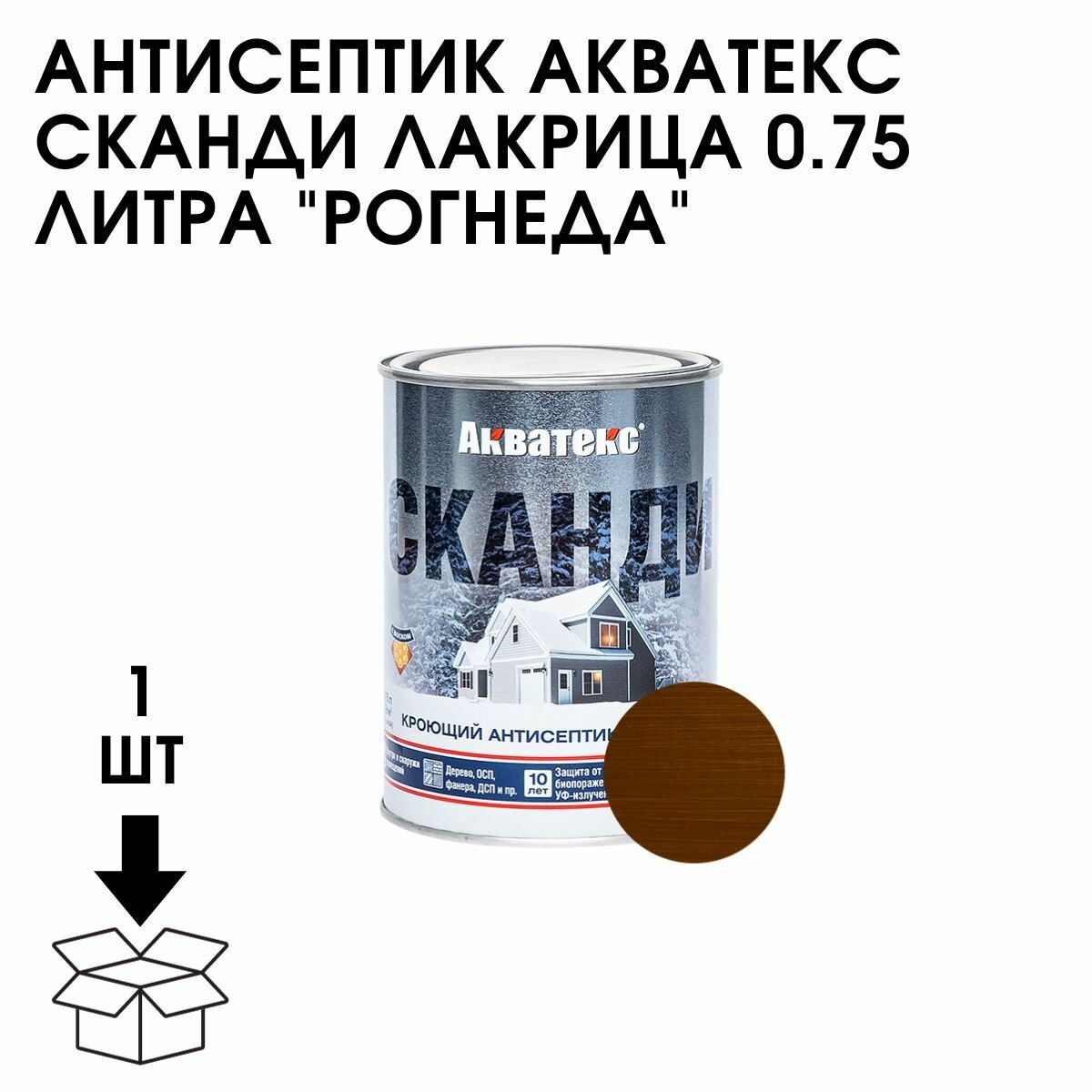 Кроющий антисептик для дерева акватекс сканди Лакрица 0,75л